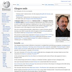 A glasgow smile (also known as a glasgow grin, anna grin, chelsea grin or chelsea smile) is a nickname for the result of cutting a victim's face from the edges of the mouth to the ears.123 the.